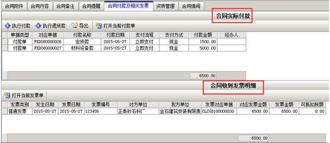 付款及發(fā)票可在“合同付款及相關發(fā)票”中查詢。如圖: