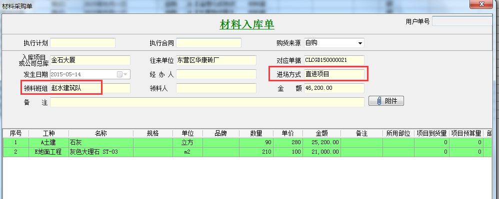 軟件中實際用量匯總是通過材料管理中材料采購單、材料出庫單、材料退庫單、材料調(diào)撥單中領(lǐng)料班組為當(dāng)前合同乙方,項目為當(dāng)前項目進行計算。如下圖:
