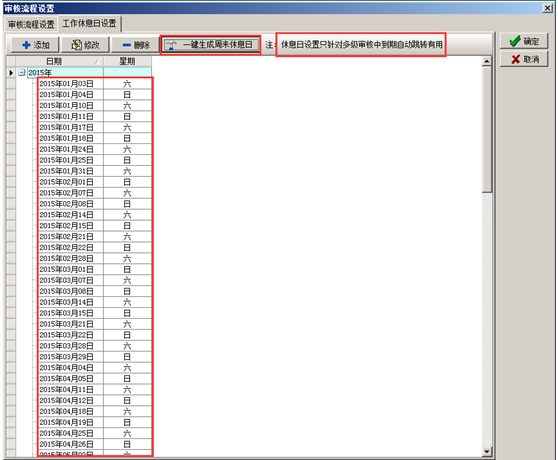 1、先由系統(tǒng)管理員設(shè)置好每個(gè)審核方案的每個(gè)審核級別的審核周期(如1天,2天,1個(gè)工作日,2個(gè)工作日等)、并設(shè)置好每天的上班時(shí)間 和下班時(shí)間。如早8:00 到下午18:00。