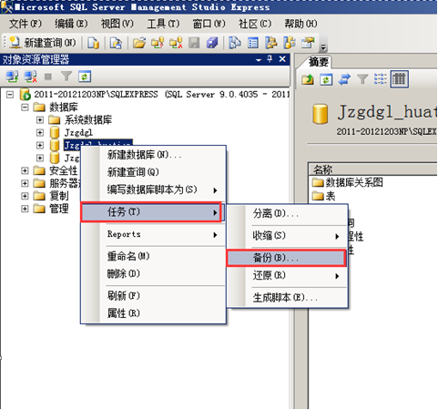 Sql2005數(shù)據(jù)還原時(shí),在“開始”-“程序”進(jìn)入資源管理器,登錄需要備份的數(shù)據(jù)庫服務(wù)器,打開企業(yè)管理器后,逐一展開,看到有數(shù)據(jù)庫項(xiàng)后,選中數(shù)據(jù)庫節(jié)點(diǎn)單擊右鍵,選擇“任務(wù)”-“還原”-“數(shù)據(jù)庫”,如圖: