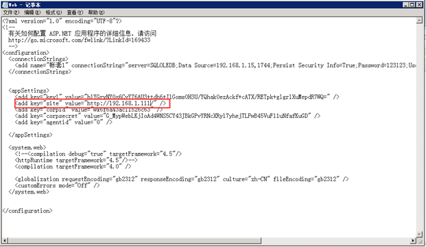 6. 設置web.conf 文件.IP地址、數(shù)據(jù)庫名稱、數(shù)據(jù)密碼、key字段等。如圖: