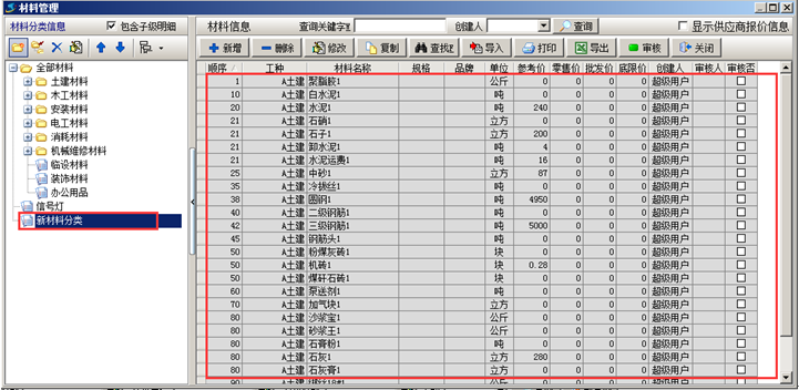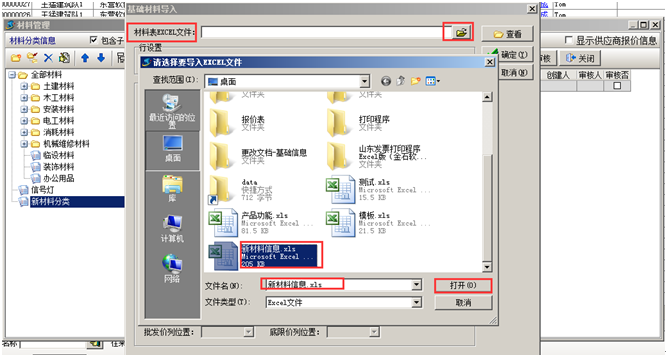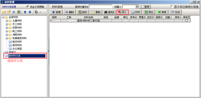 一般在建賬初期,基礎(chǔ)信息比較多,需要將基礎(chǔ)信息錄入到系統(tǒng)中的話工作量比較大??衫门繉氲墓δ軐⒒A(chǔ)信息導入到系統(tǒng)中。首先需要講基礎(chǔ)信息整理到Excel表格中,方便導入。以材料信息的導入為例,其他信息的導入可參照。