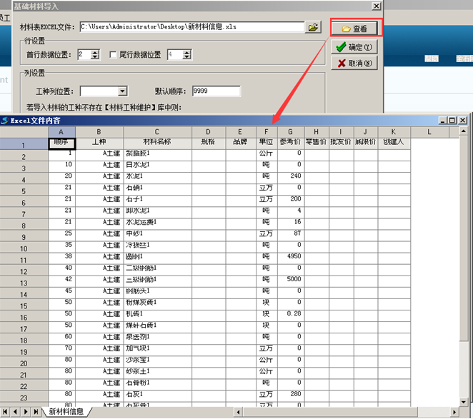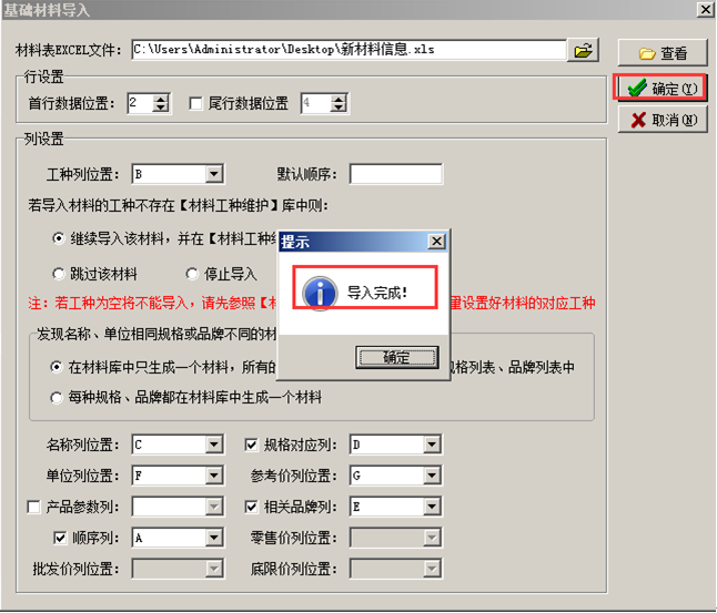 若導入的材料工種不存在,選擇導入規(guī)則;