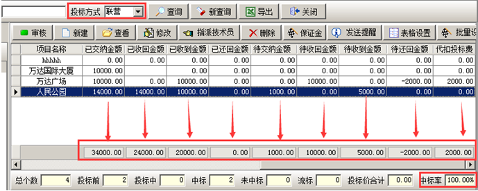 收款完成,工程管理軟件中會顯示已收到金額以及投標保證金的收付款記錄。如圖所示: