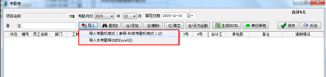 導(dǎo)入考勤表有兩種方式一種是導(dǎo)入考勤機(jī)模式另一種是導(dǎo)入本地考勤表導(dǎo)出格式。