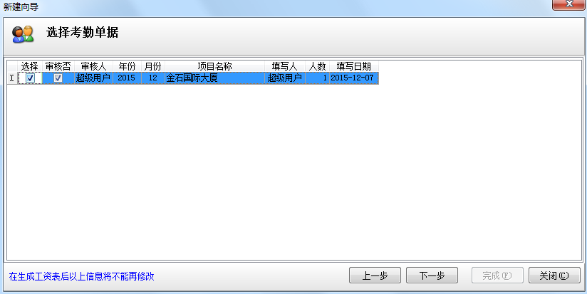 生成員工工資表時(shí)按照向?qū)нx擇審核通過(guò)的影響員工工資的單據(jù),如圖: