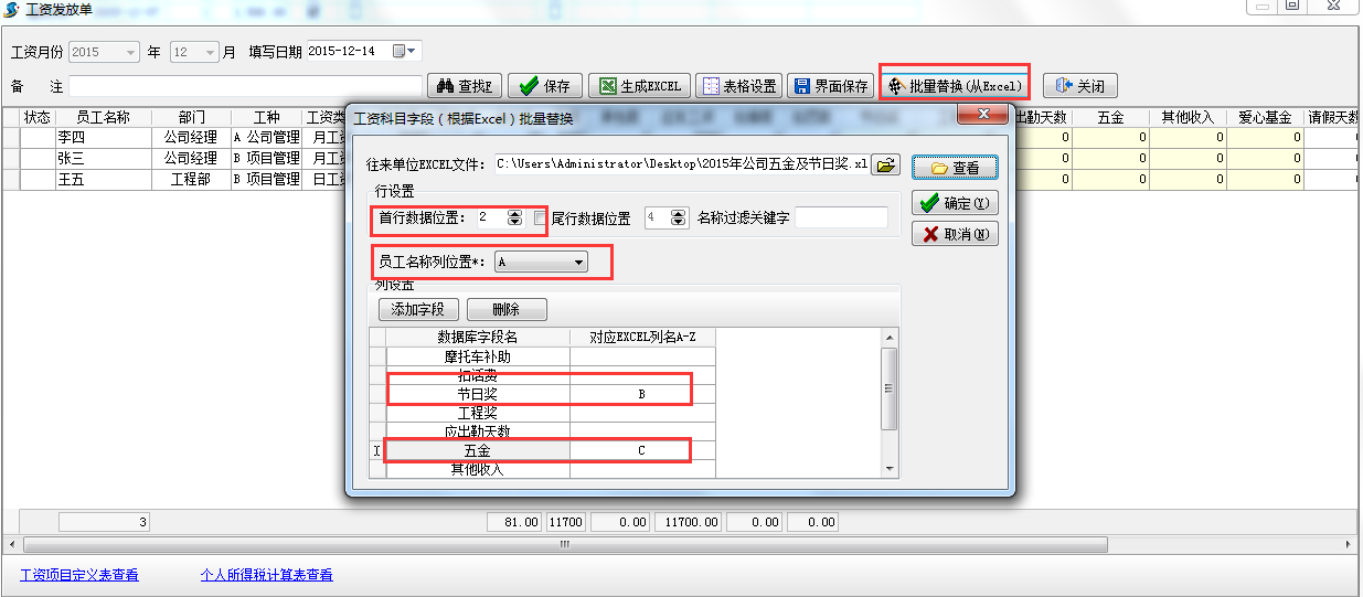 員工工資表批量替換功能: