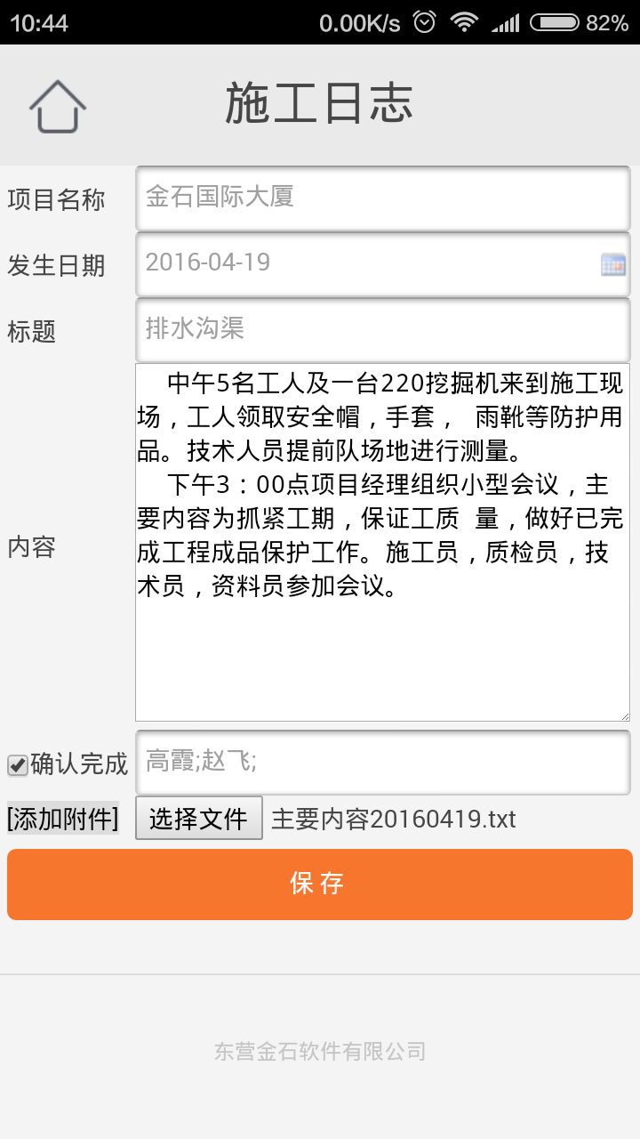施工日志 | 填寫(xiě)、修改施工日志,可上傳附件??刹榭创瓿伞⒑Y選已完成日志、點(diǎn)評(píng)他人的施工日志。 | |