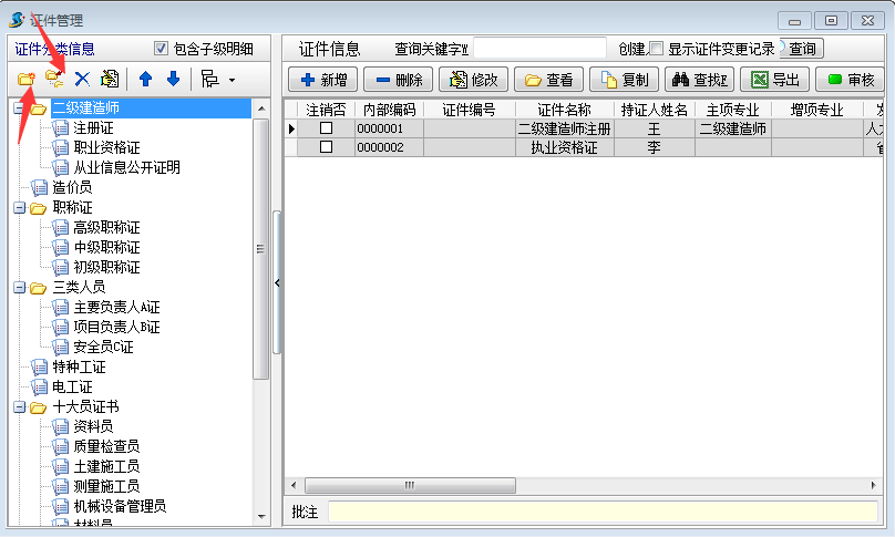 顯示證件變更記錄打勾,選擇修改(主要用于增加證件專業(yè)、所屬部門等信息的變更)