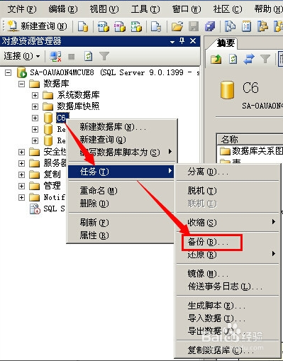 3、雙擊數(shù)據(jù)庫,右擊數(shù)據(jù)庫名,然后鼠標(biāo)移動到任務(wù),點擊備份