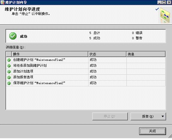 12、創(chuàng)建完維護(hù)計劃后,出現(xiàn)以下【維護(hù)計劃向?qū)нM(jìn)度】畫面,這樣就完成了自動備份的操作。