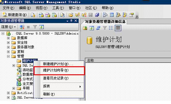 4、右擊【維護(hù)計劃】,在彈出的快捷菜單里選擇【維護(hù)計劃向?qū)А窟x項