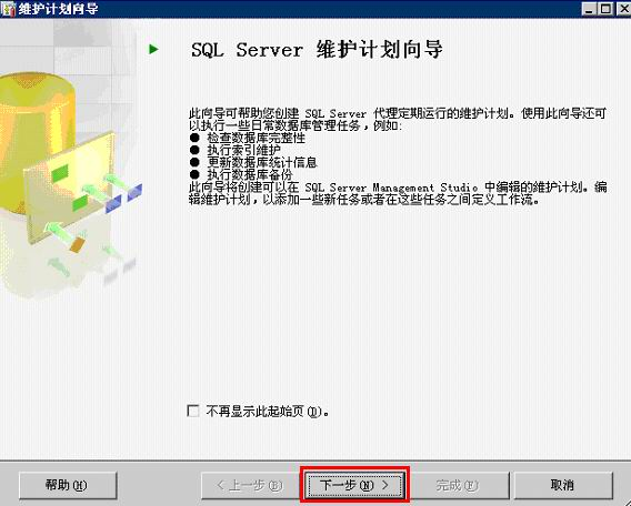 5、彈出如圖所示的【維護(hù)計劃向?qū)А繉υ捒?,單擊【下一步】按鈕;
