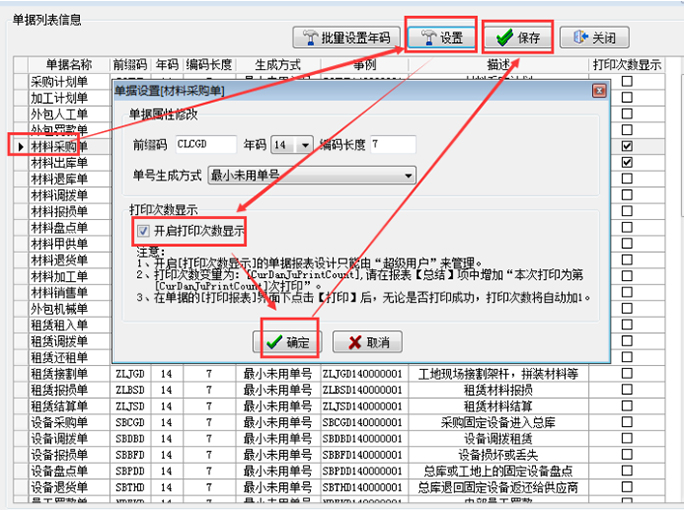 表格打印次數(shù)顯示功能是針對部分工地人員造價(jià),一張單據(jù)多次報(bào)賬的情況制作。