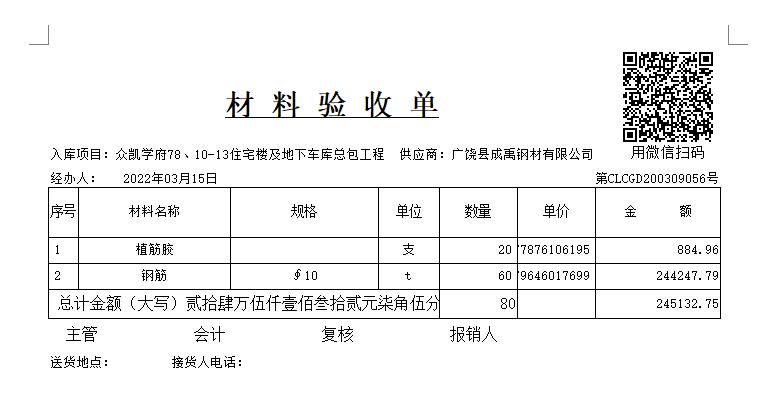 我們以材料驗(yàn)收單為例
