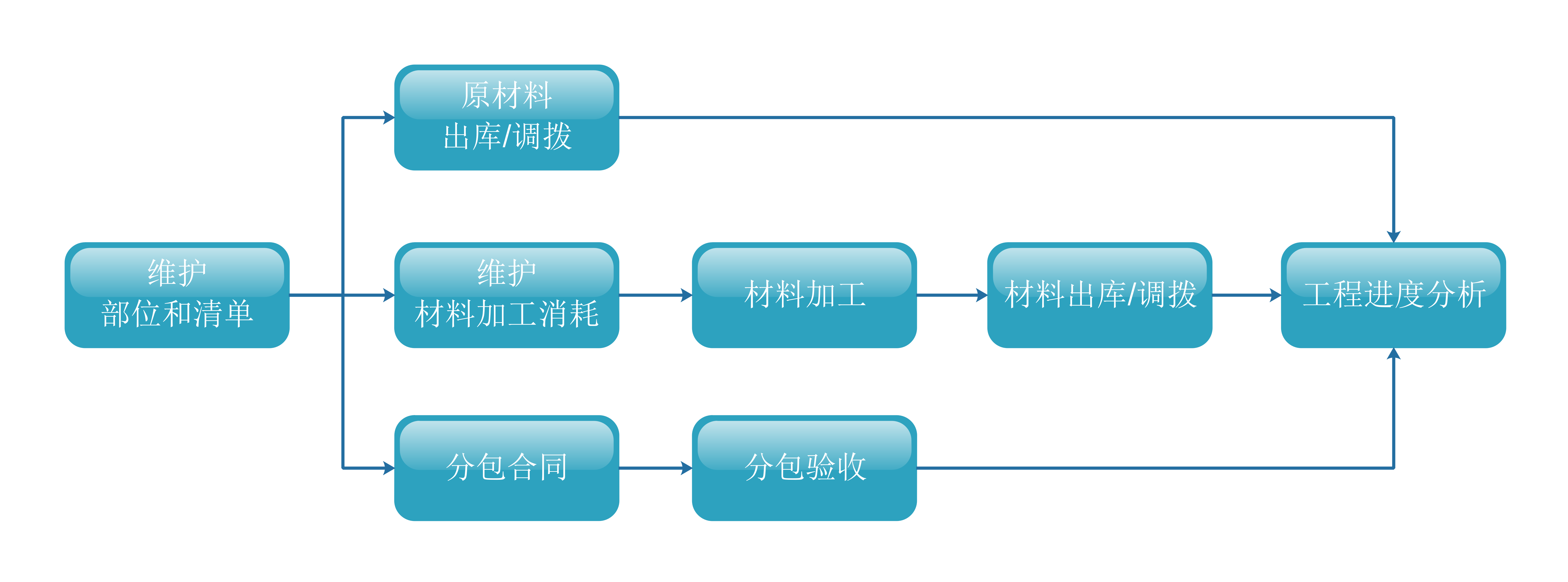 在施工進(jìn)度計劃的基礎(chǔ)上,即(工作部位分解)的基礎(chǔ)上,編制材料需求計劃、建立材料成本維護(hù)、材料加工清單、材料出庫單或調(diào)撥單關(guān)系明細(xì),產(chǎn)生詳細(xì)的進(jìn)度比較和詳細(xì)的歸納比較。