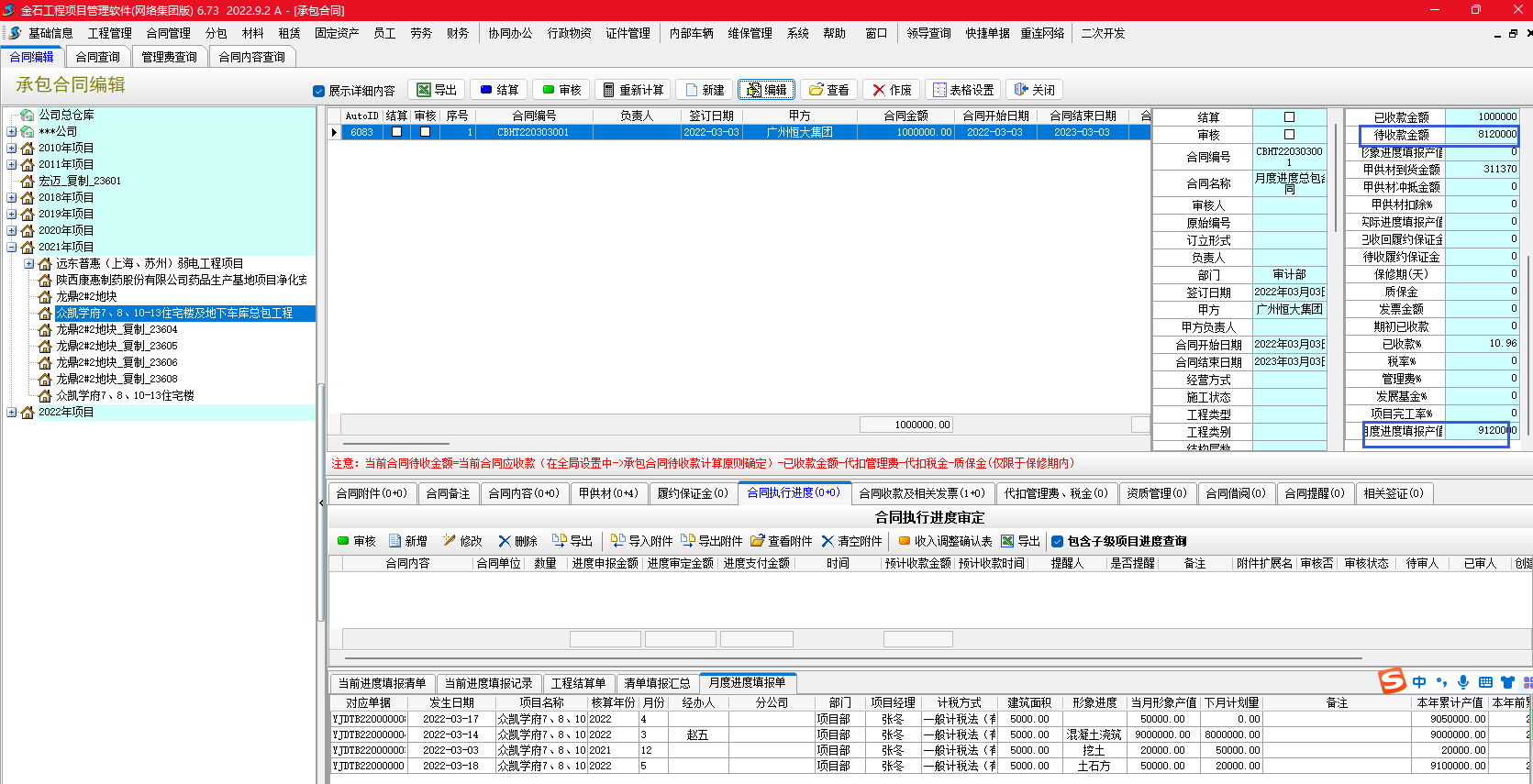 可以根據(jù)承包合同待收款計算原則設(shè)置以月度進度填報為準(zhǔn)。