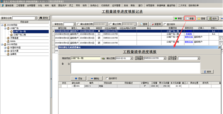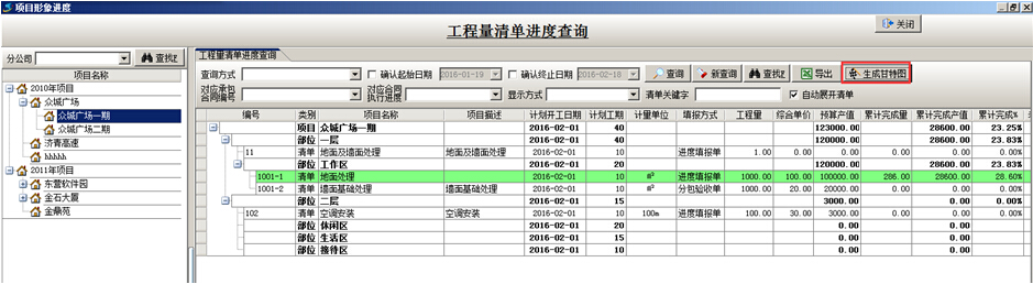 2、工程量清單進(jìn)度查詢