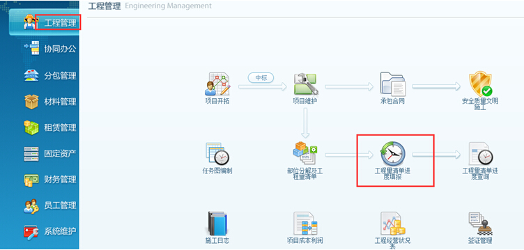 1、在施工過程中,要在工程項(xiàng)目管理系統(tǒng)中跟隨項(xiàng)目進(jìn)度做項(xiàng)目進(jìn)度填報(bào)。工程量清單編輯時(shí),填報(bào)方式為“進(jìn)度填報(bào)單”的工程可接做“進(jìn)度填報(bào)單”;(1)“進(jìn)度填報(bào)單”通過-工程量清單進(jìn)度填報(bào),如圖: