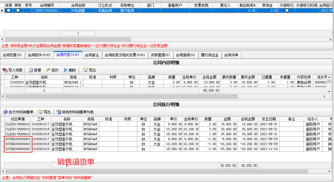 純粹的銷售業(yè)務(wù)中,增加了【銷售退貨單】。目的是為了完善銷售合同的執(zhí)行明細,補足原先銷售業(yè)務(wù)出現(xiàn)退貨時,無法直接在銷售合同【合同內(nèi)容明細】查看退貨的材料明細情況。