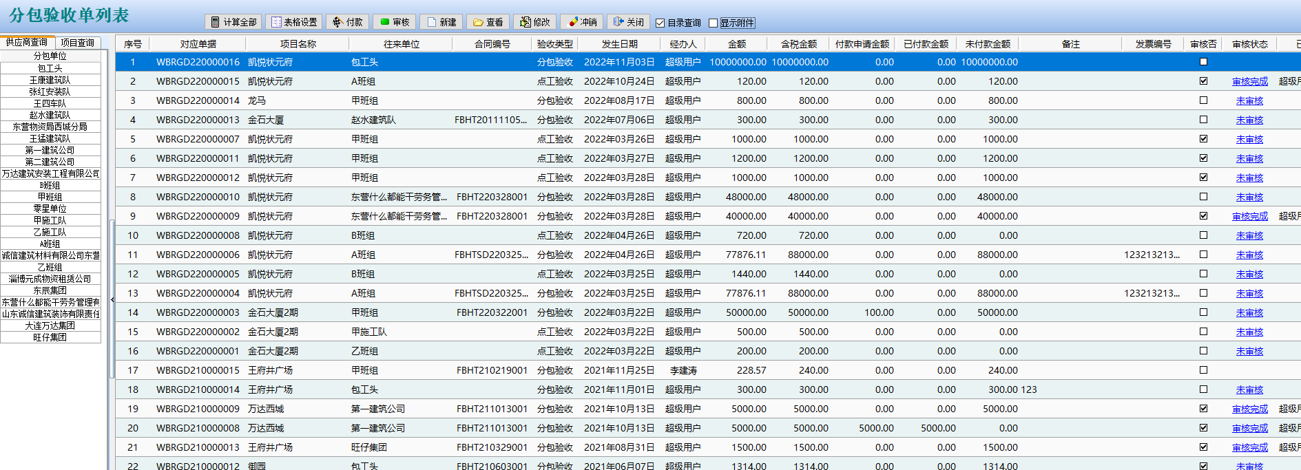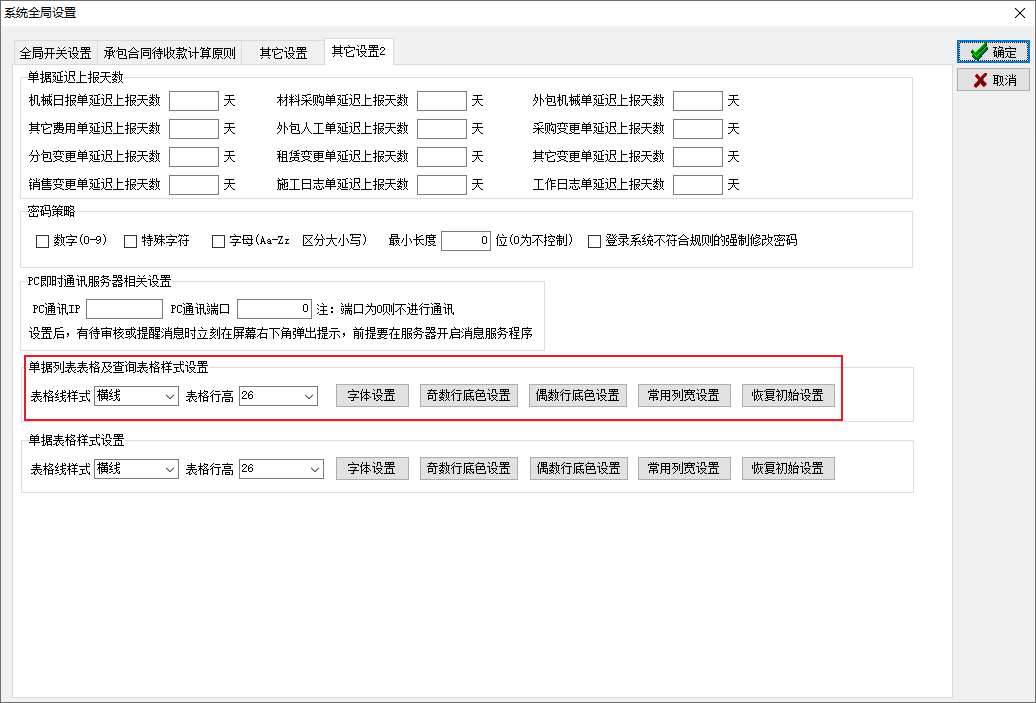 金石工程管理軟件新增單據(jù)列表表格及查詢表格樣式設置
