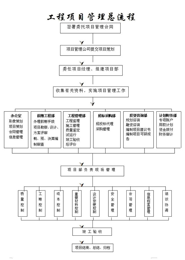 建筑項(xiàng)目的生產(chǎn)要素有勞動(dòng)力、材料、機(jī)械設(shè)備、技術(shù)和資金,這些要素具有集合性、相關(guān)性、目的性和環(huán)境適應(yīng)性,是一種相互結(jié)合的立體多維的關(guān)系,這就說明項(xiàng)目的實(shí)現(xiàn)是一個(gè)具有系統(tǒng)性的施工過程。建筑項(xiàng)目管理具有系統(tǒng)管理的特點(diǎn)。加強(qiáng)項(xiàng)目管理,必須對(duì)施工項(xiàng)目的生產(chǎn)要素詳細(xì)分析,認(rèn)真研究并強(qiáng)化其管理。金石建筑工地管理系統(tǒng)著眼于建筑施工項(xiàng)目中的各種重要環(huán)節(jié)有效管理,既考慮到對(duì)單個(gè)項(xiàng)目中各種生產(chǎn)因素的管理,又考慮到建筑企業(yè)管理過程中對(duì)公司有限資源的統(tǒng)籌安排及有效利用。下文就以山東宏太為例,簡單介紹針對(duì)建筑施工企業(yè)項(xiàng)目管理的特點(diǎn),以及如何建立完善、高效的項(xiàng)目管理信息化系統(tǒng)。 該公司項(xiàng)目管理總流程如下圖: