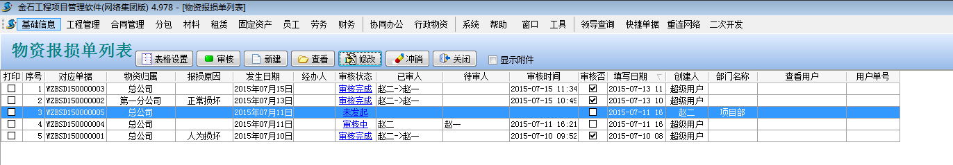 【物資報損單】是用來報損物資的業(yè)務單據。 類似【材料報損單】或者【設備報損單】,一個是針對物資報損,一個是針對材料或者設備報損。