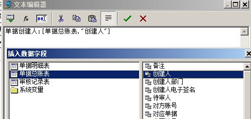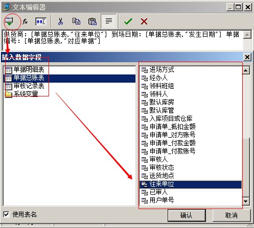 在彈出的表達式編輯器中,再來選擇具體的字段。我們選擇單據(jù)明細表中的金額字段,那么統(tǒng)計的就是所有明細項的總金額。如下面幾張圖所示: