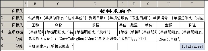 5)總結:用于整份報表最后一頁打印的內容,如果有主項數(shù)量,他會在最后一頁緊接著主項數(shù)據(jù)后打印。如果有頁注腳,會打印在頁注腳前。