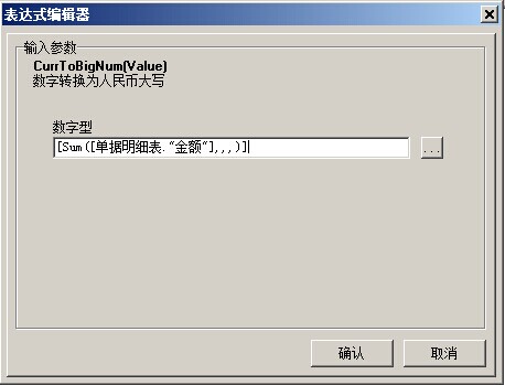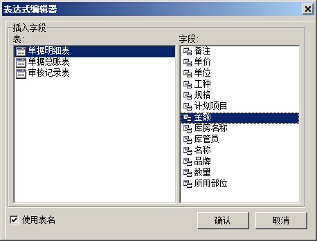 選擇好,之后點擊確定,就會依次保存各個選擇框,最終結果:[Sum([單據(jù)明細表."金額"],,,)]