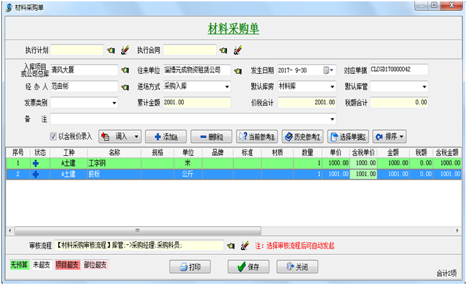 1.首先我們建立一個(gè)“材料采購(gòu)單”和簡(jiǎn)單的審核流程