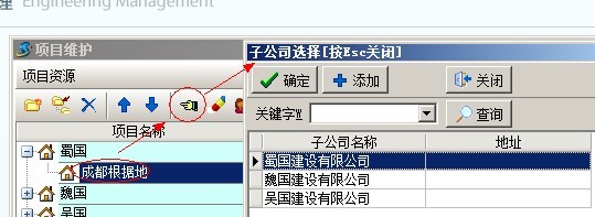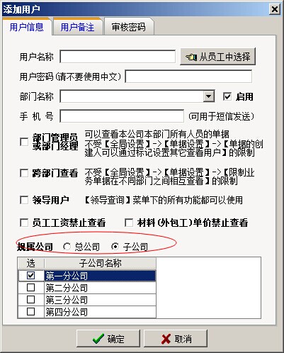 B:公司授權(quán)判斷,是指判斷當(dāng)前用戶是屬于總公司還是子公司,如果屬于子公司,判斷當(dāng)子公司是否有項目授權(quán)。用戶所屬公司的設(shè)置和子公司項目授權(quán)的設(shè)置如下圖: