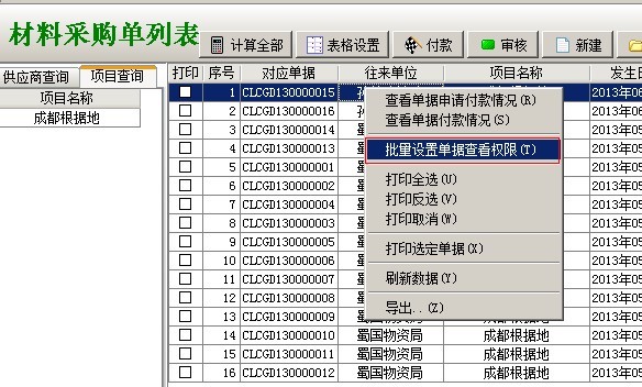 在工程項目管理軟件(集團(tuán)版)中,存在一些設(shè)置(開關(guān)),使業(yè)務(wù)單據(jù)的訪問存在一定限制,只有在滿足條件的。用戶才能查看到該業(yè)務(wù)單據(jù)。如下圖: