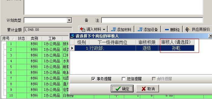 在多級審核業(yè)務(wù)單據(jù)中,填寫完業(yè)務(wù)單據(jù)內(nèi)容后要選擇審核方案,審核方案選好后,點保存按鈕保存單據(jù),這是會彈出待審人選擇窗口,如下圖,這時我們要選擇好下一級的審核人,選擇好后,那么該用戶就是業(yè)務(wù)單據(jù)的待審人。在審核中心和業(yè)務(wù)單據(jù)列表中就可以看到該業(yè)務(wù)單據(jù)。